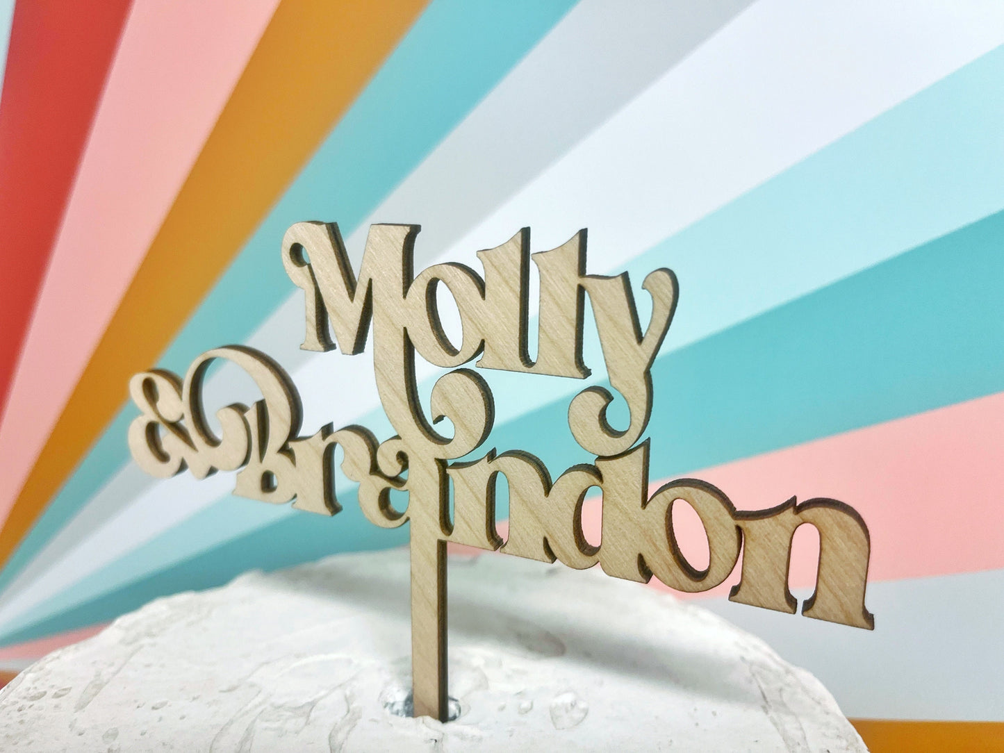 Custom Retro Wooden Wedding Cake Topper Gold Black Rose Gold Silver, Mid Century Modern Retro Cake Topper, Add Your Custom Text